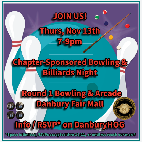 This is a Chapter-Sponsored event for Danbury H.O.G. Chapter members, any guest requests will be accommodated only if space allows (and guests must pay separately).